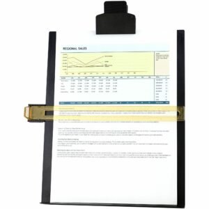 | Marketing Information: | Easel Document Holder features an adjustable document clip and highlighting line guide. Use to hold multiple sheets of letter-size paper for easy viewing. |