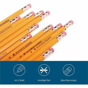 | Marketing Information: | Wood-case No. 2 pencils feature a rounded, hexagonal shape for easy writing. The nonlead painted case is yellow and has a brass ferrule. Each HB pencil has an eraser on the tip to erase your mistakes. Latex-free eraser is smudge-resistant for clean erasing. |